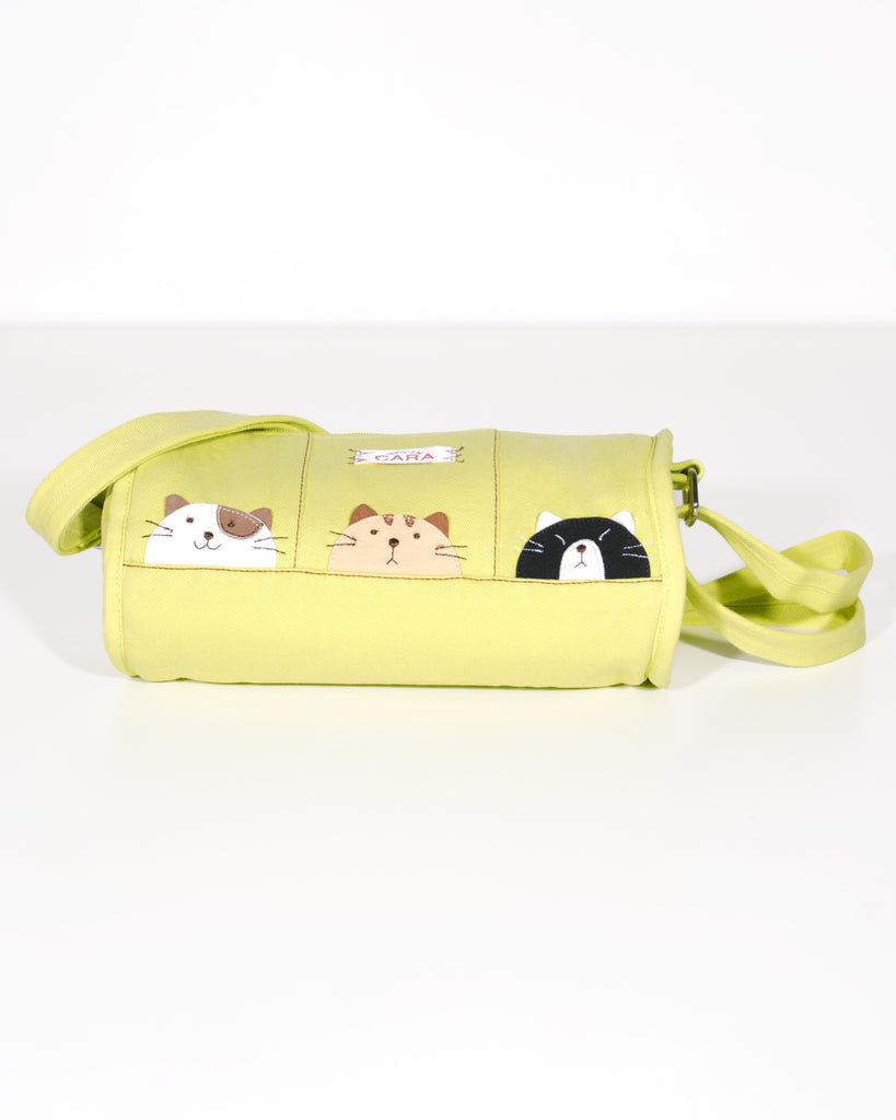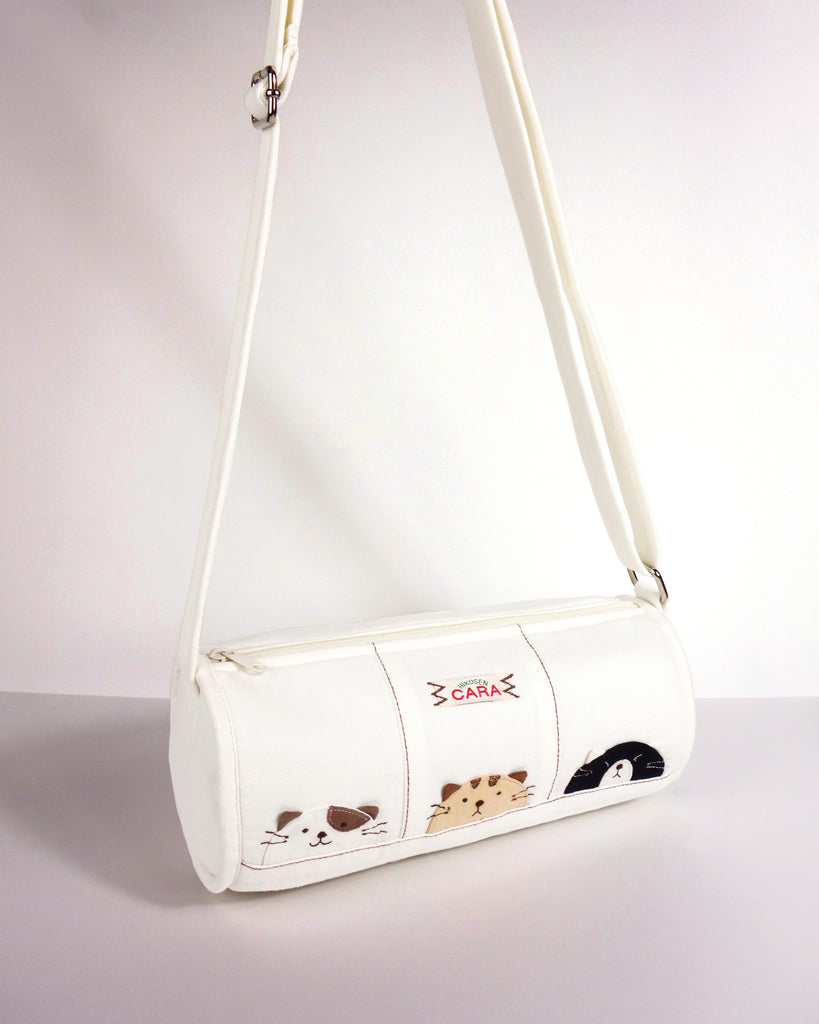 The cylindrical Tootsie Cats Crossbody Bag holds your essentials for totin' around. Take these three cats with you on your next errand run!